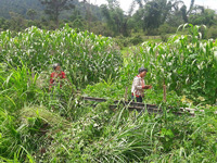 トウモロコシ畑や棚田の中を歩いて村々を訪問します。村の人々は笑顔で出迎えてくれます。